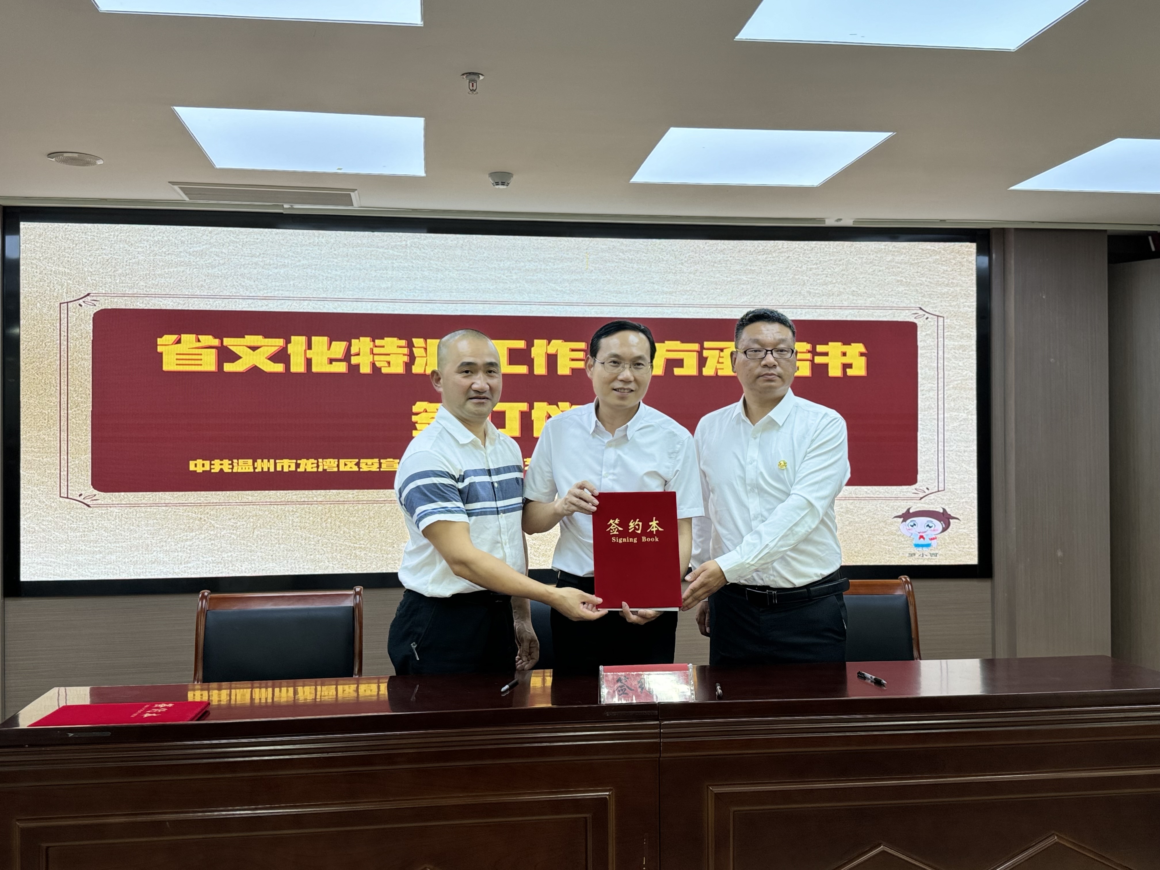 签订仪式上,浙江艺术职业学院、龙湾区委宣传部与省级文化特派员一同签订三方承诺书。