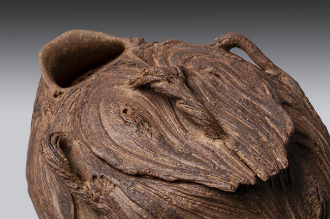 创作理念:黏土真的很神奇,因有水的加持,柔软似丝绸划过指尖,因有火的加持,又回归岩石般质地。创作者只有谦卑地顺应泥性,才能通过土的语言来表达。本次宝瓶的创作手法纯粹,只拉坯不修坯,尽可能保留创作痕迹而一气呵成。捉手是拉坯过程中的边角料率意堆砌,瓶身椭圆壶口向内边稍倾,看似随意的手法又尽量满足实用需求,盈盈一握,出汤利索,烤银后的金属质感又增添了一份现代气息,与写意的创作手法相得益彰,是创作者内心的一次浪漫之旅。