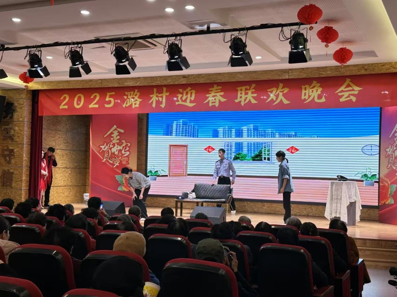 当天,潞村文化礼堂举办“2025潞村迎春联欢晚会”,晚会邀请浙江艺术职业学院等4所高校文艺青年与吴兴区城乡群众文艺爱好者同台献演。节目类别有歌伴舞、小品、相声、中老年乐器合奏、青少年街舞秀、魔术、越剧、武术等。演出还邀请村民与村干部通过互动访谈环节共话未来。其中相声《哪吒闹海》、小品《警号:030281》由我校演艺与教育学院学生表演。