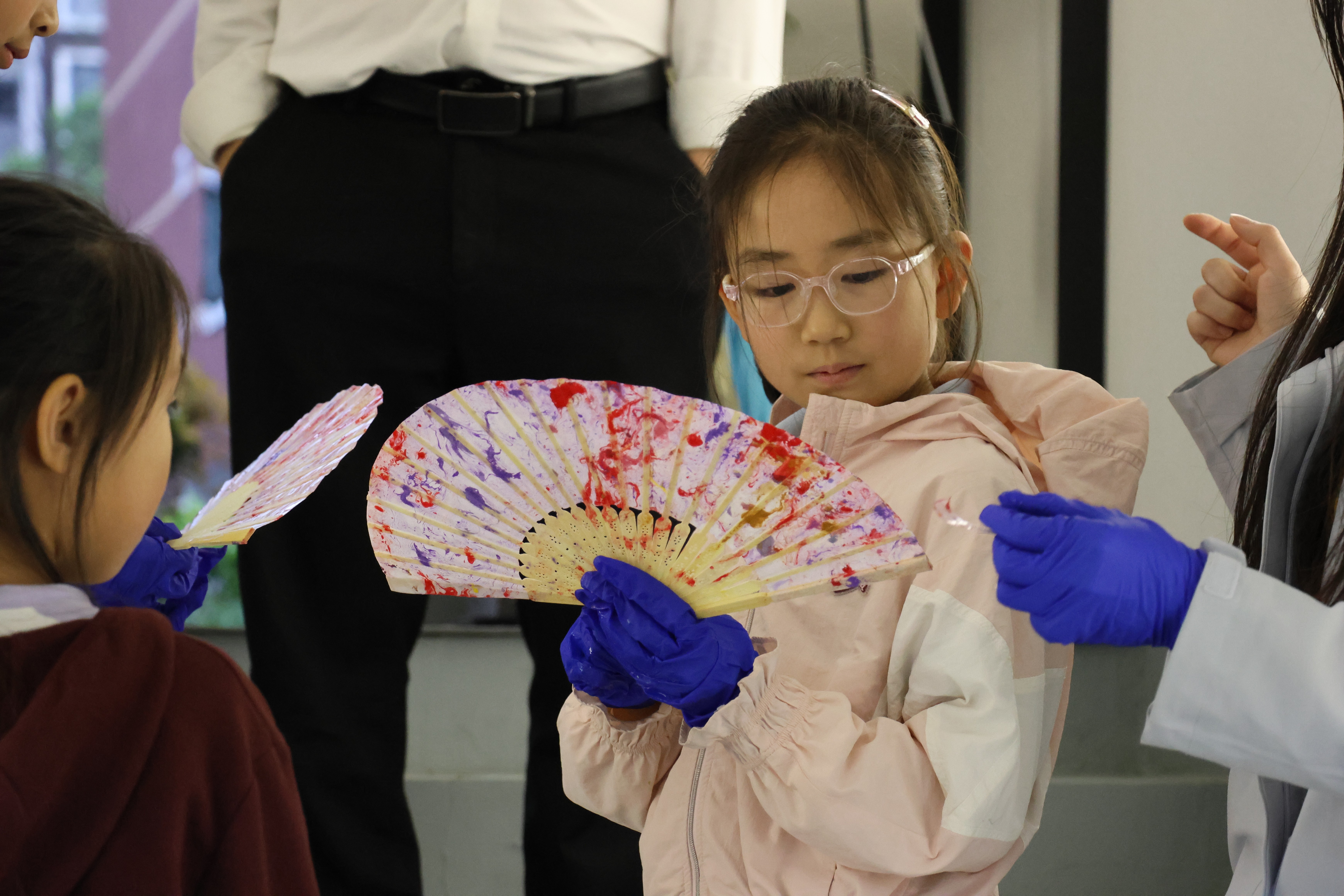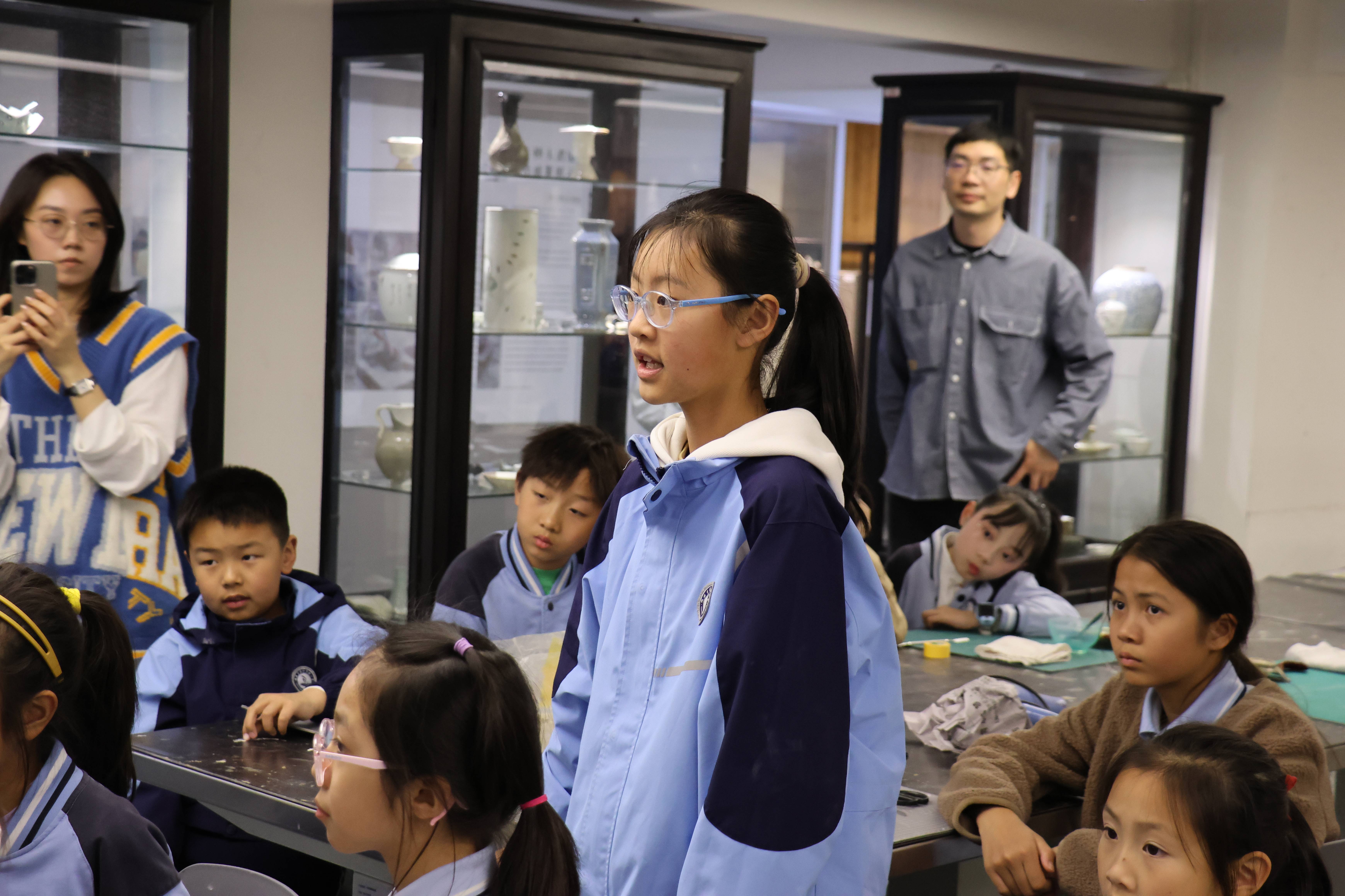 活动期间,朱伟洁、徐佳颖两位老师带领同学们参观了古陶瓷修复实训室。同学们亲自动手参与了器物补缺实践活动和漆扇制作体验,充分感受传统手工艺的独特魅力。