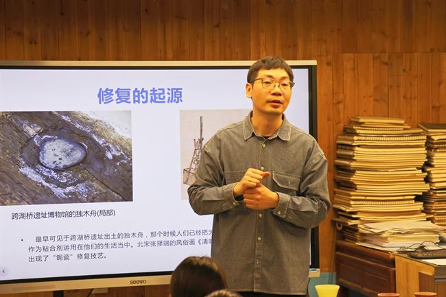 谈及文物保护的重要性,施俊天结合大型纪录片《我在故宫修文物》,详细讲述了文物修复的目的意义、原则、专业类别和主要艺术流程,并简要介绍了浙艺手工艺学院文物修复与保护专业建设情况。