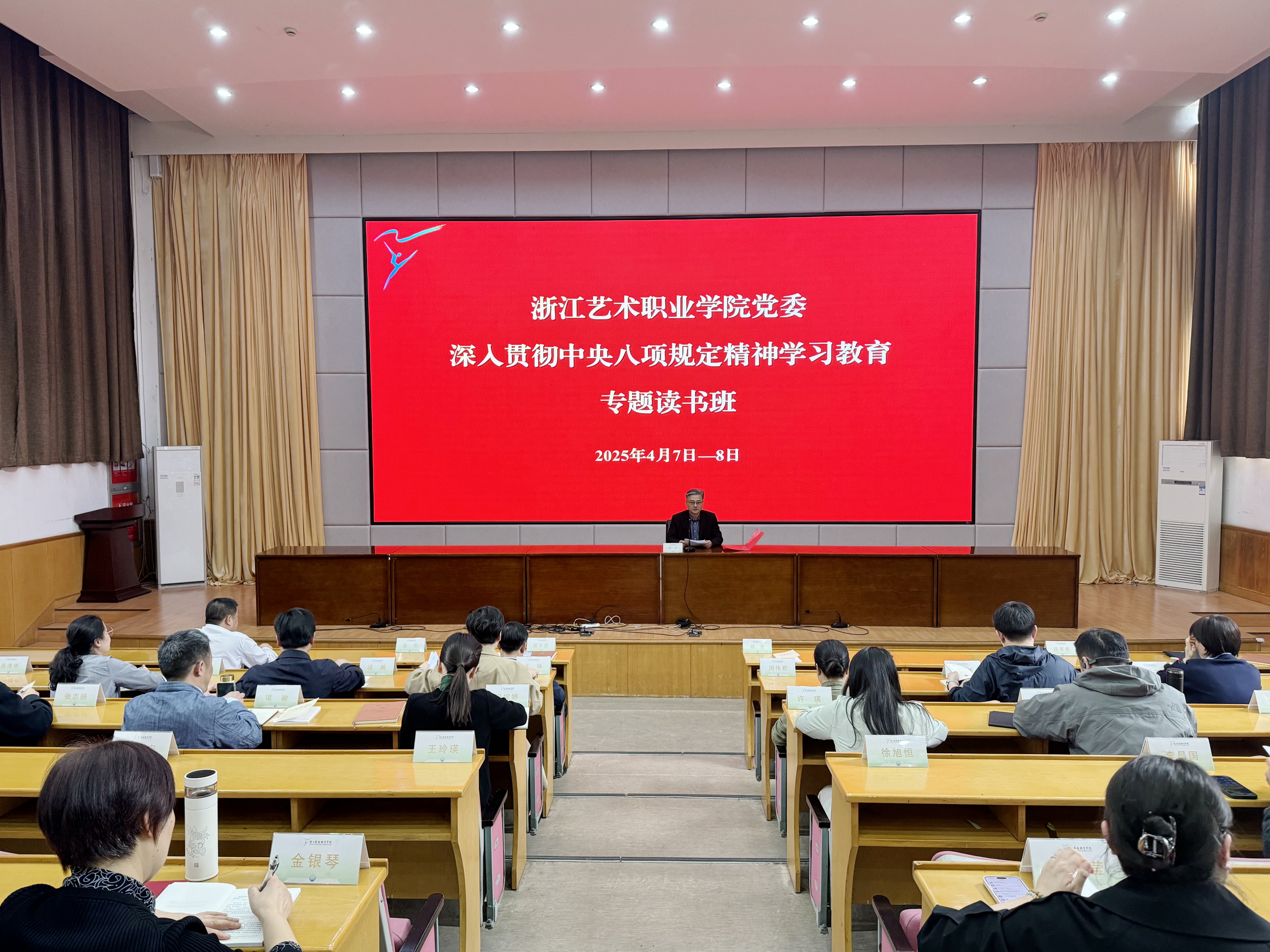 4月7日至8日,学校党委用两天时间,采取书记领学、个人自学和集中研讨相结合的方式,举办深入贯彻中央八项规定精神学习教育专题读书班。学校党委领导班子成员、全体中层干部参加读书班。