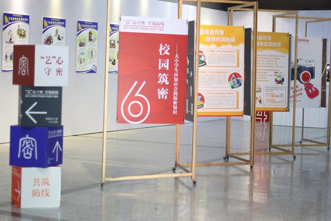 “‘艺’心守密 共筑防线”保密宣传教育专题展是学校在保密宣传教育领域的创新尝试,展览以艺术之美诠释保密之重,将保密宣传教育融入理论宣讲、专业教学和赛事展览,拓宽了思政育人空间,提升了师生安全保密意识。