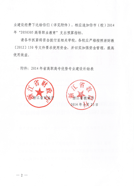 浙江省财政厅 浙江省教育厅关于发布2014年高职高专院校优势专业建设补助资金的通知