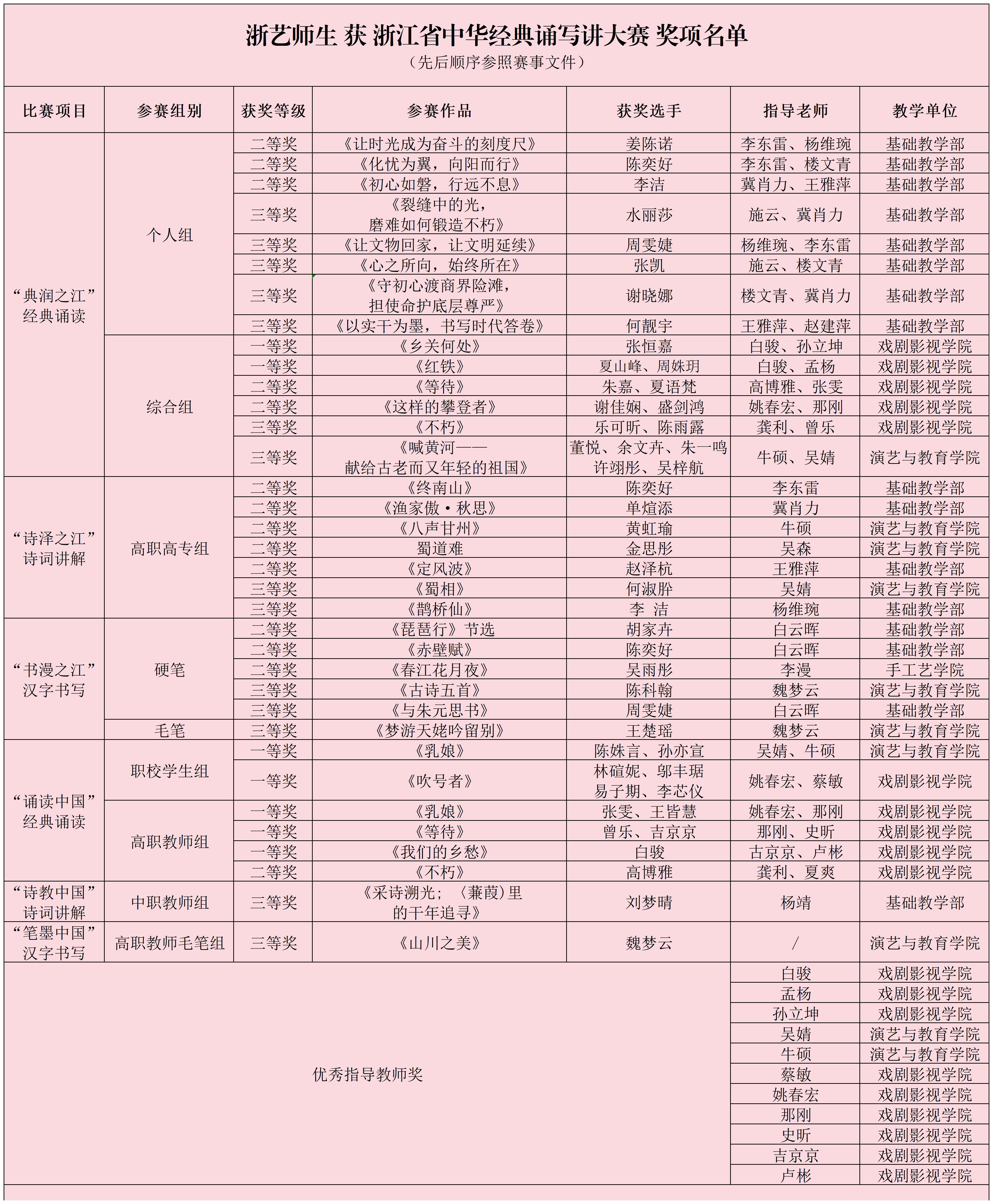 此次优异成绩的取得,是我校持续推进教学改革、深化实践育人成效的集中体现,充分彰显了学校在传统文化传承与语言艺术教育领域的深厚积淀与创新活力。学校将以此为契机,进一步推动中华优秀传统文化全方位融入育人体系,持续提升学生文化素养和艺术综合能力,为浙江文化强省建设和语言文化事业高质量发展贡献“浙艺力量”。