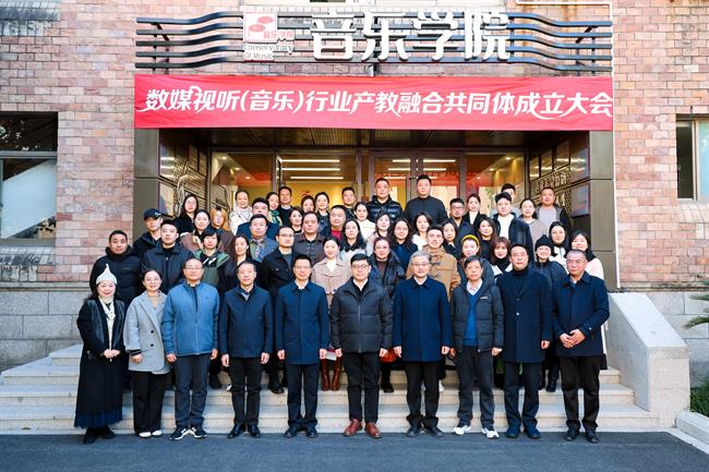 薛亮指出,共同体的成立是贯彻落实党的二十大关于文化数字化战略部署的生动实践,也是服务浙江“高水平文化强省”建设的关键举措。他强调,数媒视听行业正经历技术革新与产业变革,亟需构建“教育链—人才链—产业链—创新链”深度融合的新生态。为此,共同体将以“共建、共育、共享、共赢”为原则,重点推进四项举措。一是资源整合:共建虚拟现实音乐剧场、AI音乐创作实验室、沉浸式文旅音效实训中心等平台,推动教学场景与产业需求无缝对接;二是标准共建:协同行业龙头企业研制数媒音乐岗位能力标准,开发“岗课赛证”融通课程体系;三是人才共育:推行现代学徒制和项目化教学,让学生深度参与数字专辑制作、非遗数字化传播等实战项目;四是生态营造:定期发布《数媒视听人才发展报告》,举办行业论坛与成果展,助力文化出海。