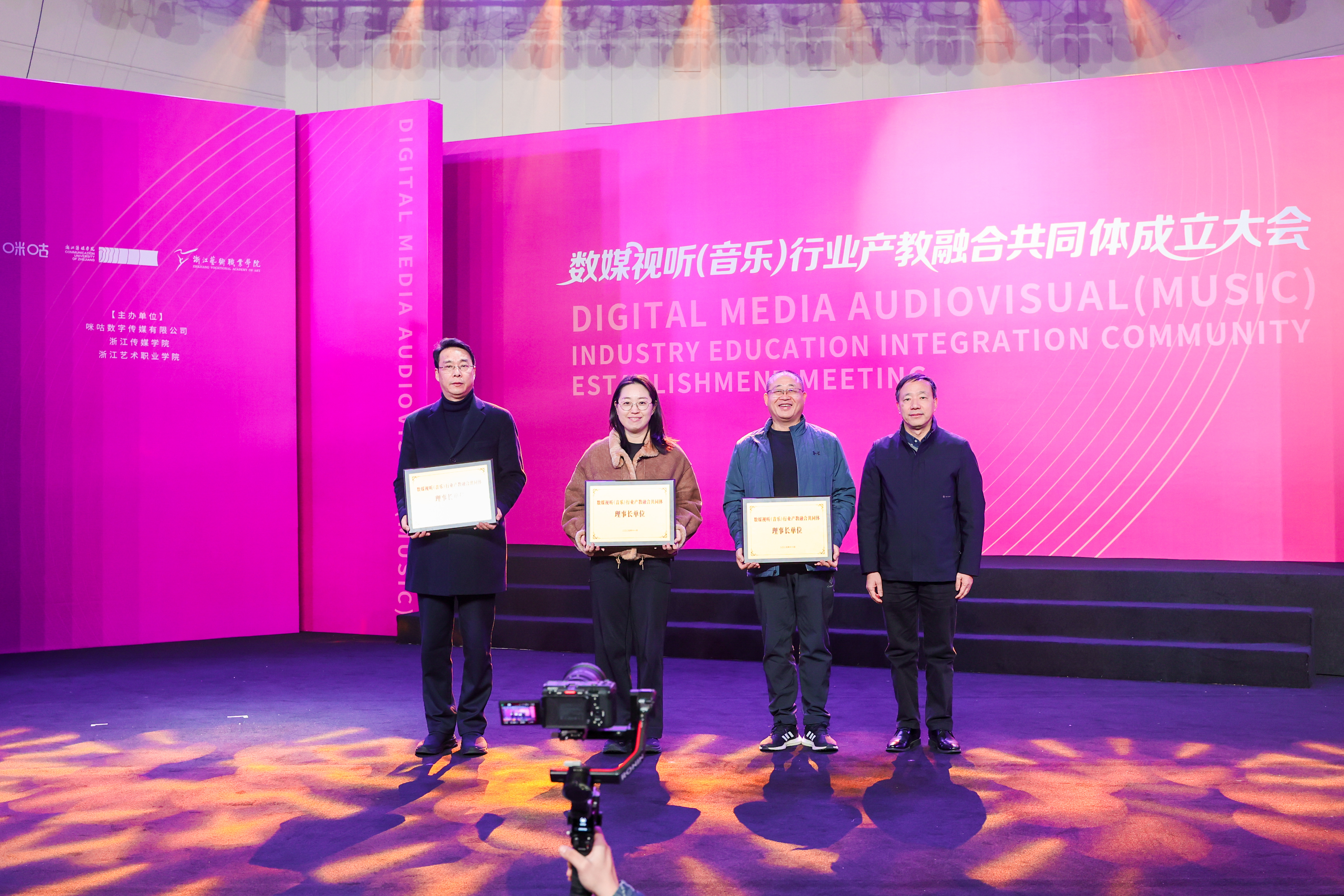 11月28日上午,由咪咕数字传媒有限公司、浙江传媒学院、浙江艺术职业学院联合发起的“数媒视听(音乐)行业产教融合共同体”成立大会在浙江艺术职业学院举行。