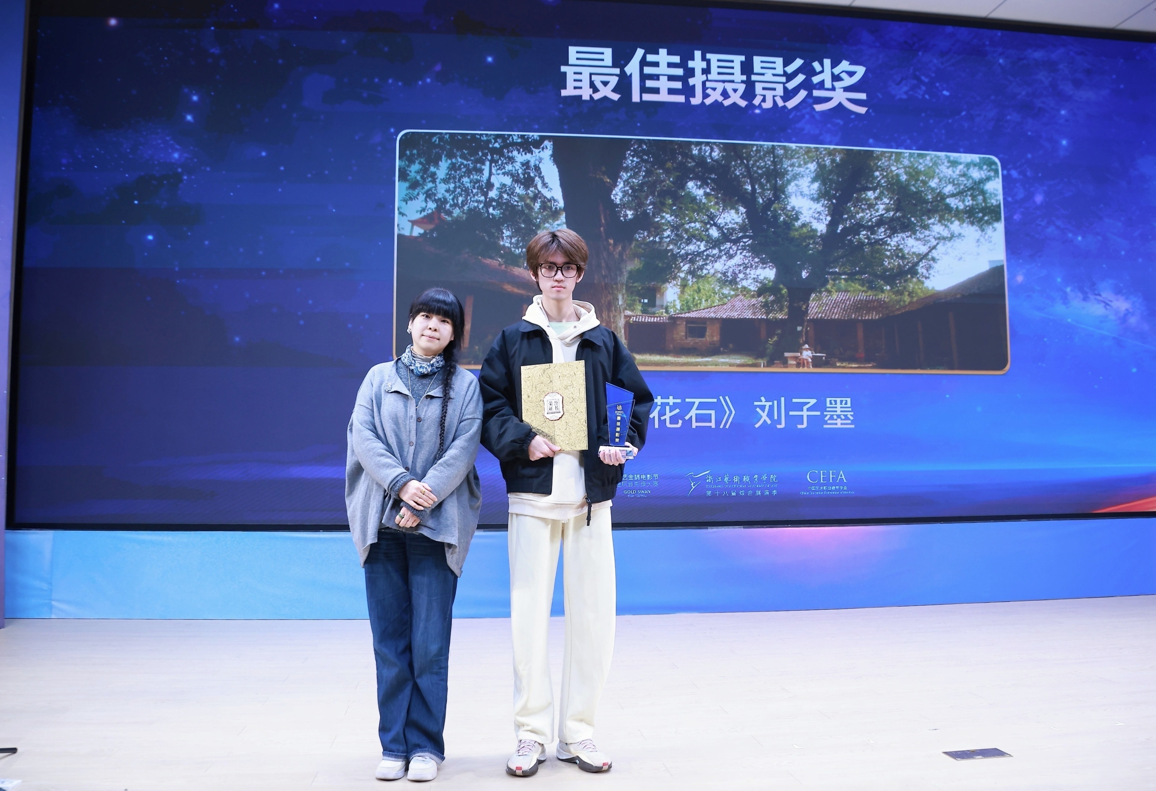 11月21日晚,由浙江省教育厅、浙江省文化广电和旅游厅、浙江省电影局、浙江省电影家协会指导,中国艺术职业教育学会主办,浙江艺术职业学院、金鹄青年电影周暨原创影像大赛组委会、微短剧行业产教融合共同体联合承办的第八届金鹄青年电影周暨原创影像大赛,在浙江艺术职业学院落幕。