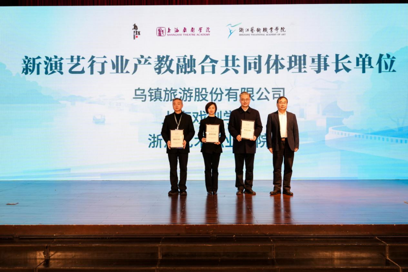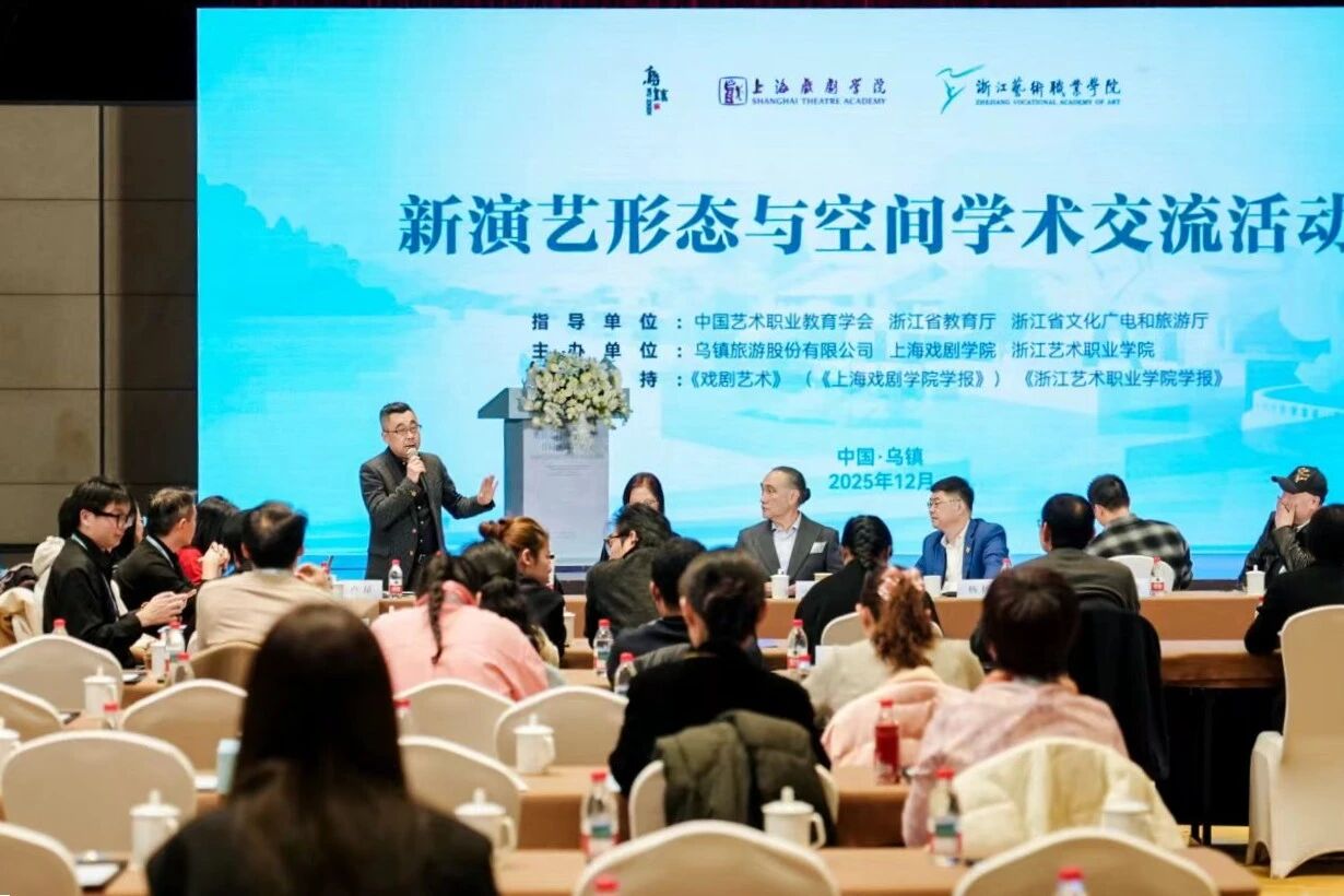 12月6日,新演艺行业产教融合共同体成立大会暨新演艺形态与空间学术交流活动在乌镇举行。本次活动由中国艺术职业教育学会、浙江省教育厅、浙江省文化广电和旅游厅指导支持,乌镇旅游股份有限公司、上海戏剧学院、浙江艺术职业学院联合主办,来自全国演艺行业院校、企业、科研机构及行业协会的百余位嘉宾齐聚水乡乌镇,共商产教融合大计,共话行业创新发展。
