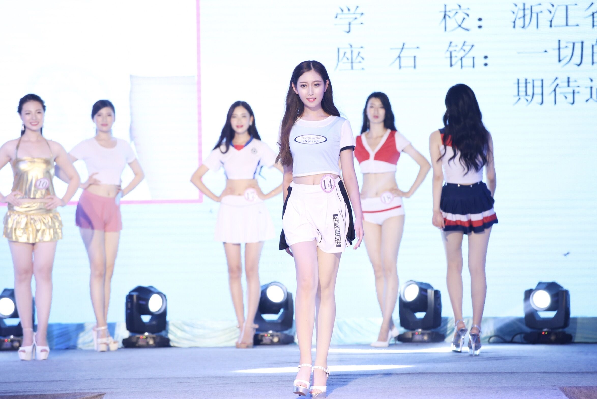 有成功,必先有磨难。吴嘉琦这位刚刚为“大一新生”划上句号的女生,在问到比赛中遇到过哪些困难时,没有了女孩少不经事式的激动,更多的是沉着和宁静,娓娓道来,似乎在诉说别人的故事。“总决赛那天早上,我们上台彩排,由于是室外临时搭建的舞台,穿着高跟鞋走上去,就像踩在棉花上一样,走路很不稳。舞台没有完全搭建完成,延伸台还没有铺地毯,还是铁的台露在外面。那天上午烈日高挂,气温高达38度,我不争气地中暑了,脚下发软,摔倒了两次……但是老师们都在台下看着啊,我就告诉自己,不能放弃。我忍着痛站了起来,把高跟鞋脱下来拿在手里,微笑着光着脚走上前去。走到那个钢制的延伸台的时候,我仿佛听到了脚下传来滋滋滋的声音。有些麻木了……下台以后,大家都朝我拥了过来,关心地问我有没有崴伤了脚,还能不能继续穿高跟鞋参加比赛。其实,光脚在滚烫的铁板上走真的很痛,脚也真的肿得没办法穿高跟鞋了,但我心里有一个声音告诉我,不能放弃,不能辜负家人、老师和朋友对我的期待。我是代表杭州市出赛的,更是代表了浙艺,不能因为这点困难就放弃了。就是这样的念头,让我坚持到了最后。”